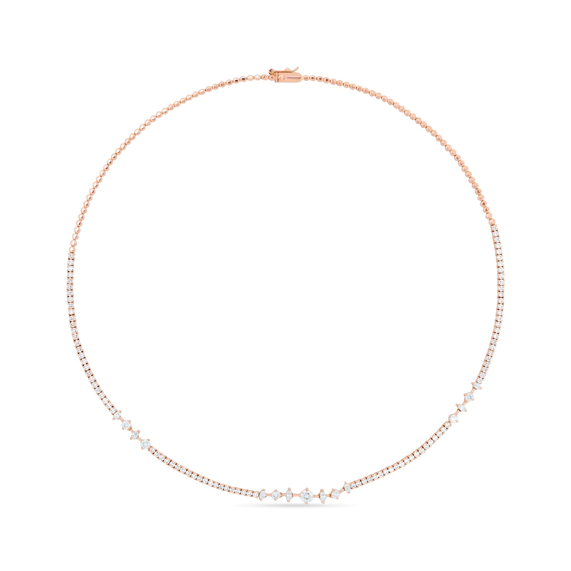 The Imperial Shine Marquise Stellare Gold Necklace exudes regal elegance and luminous sophistication. Featuring a striking arrangement of marquise-cut stones set in polished gold, the necklace captures light brilliantly, creating a dazzling display around the neckline. Its exquisite design combines classic refinement with modern artistry, making it perfect for special occasions or statement wear.